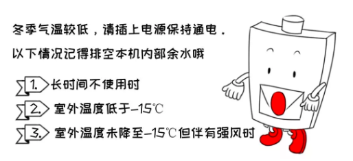 當室外溫度下降到-15℃以下,或雖未下降到-15℃以下,但伴有強風等其他自然因素時,熱水器的電加熱防凍能力可能不足,也可以使用這個方式防凍。